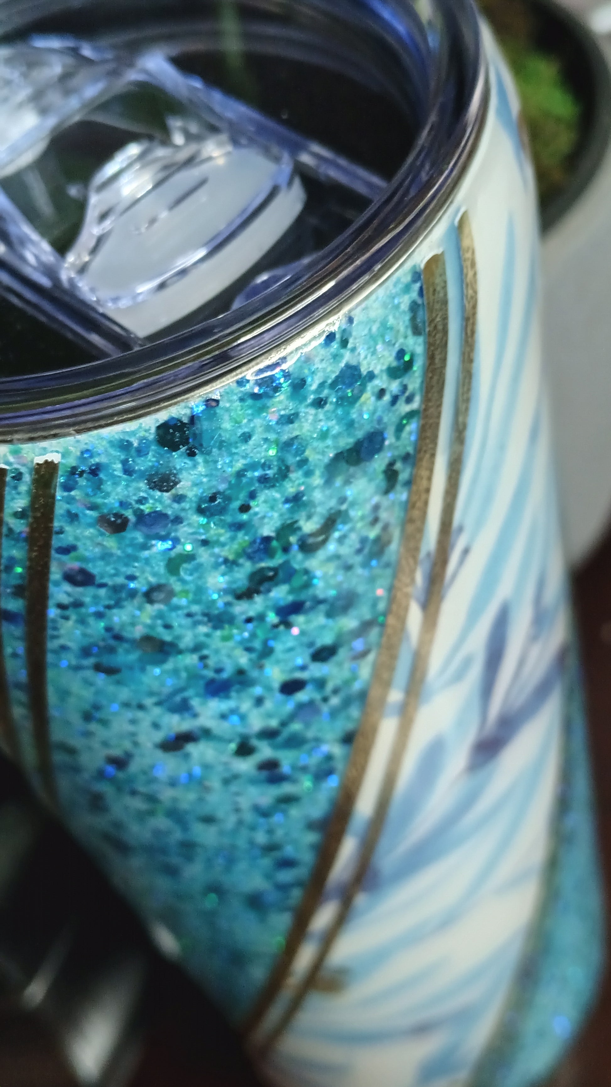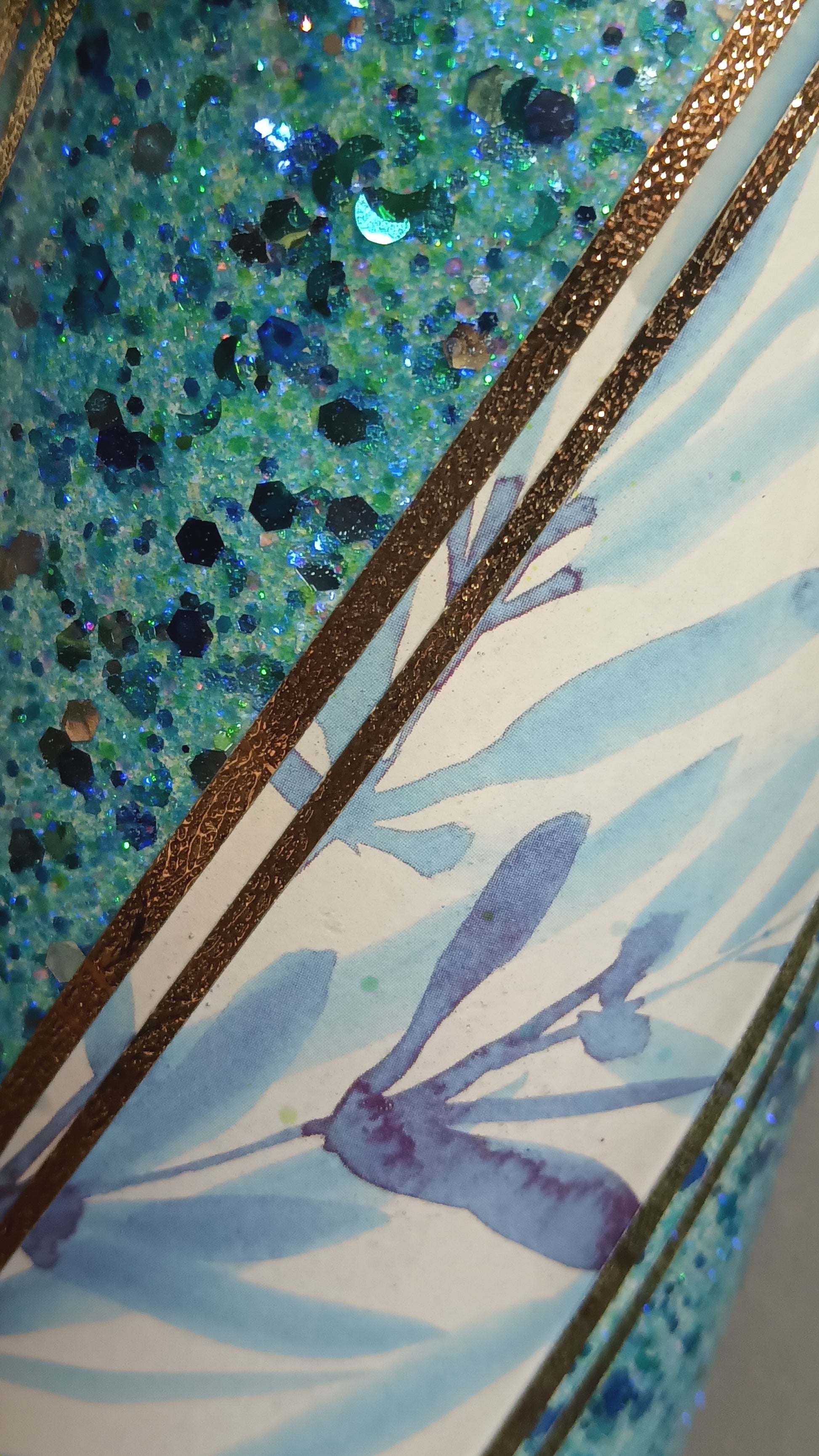 This is a beautiful blue glitter twist with accents of gold. Comes with a matching pen.